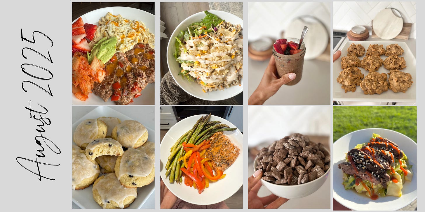 Three new dinner recipes this month and the return of some older OG favorites like 1-pan balsamic salmon, loaded burger bowl, and zucchini enchilada casserole - my all-time fave.